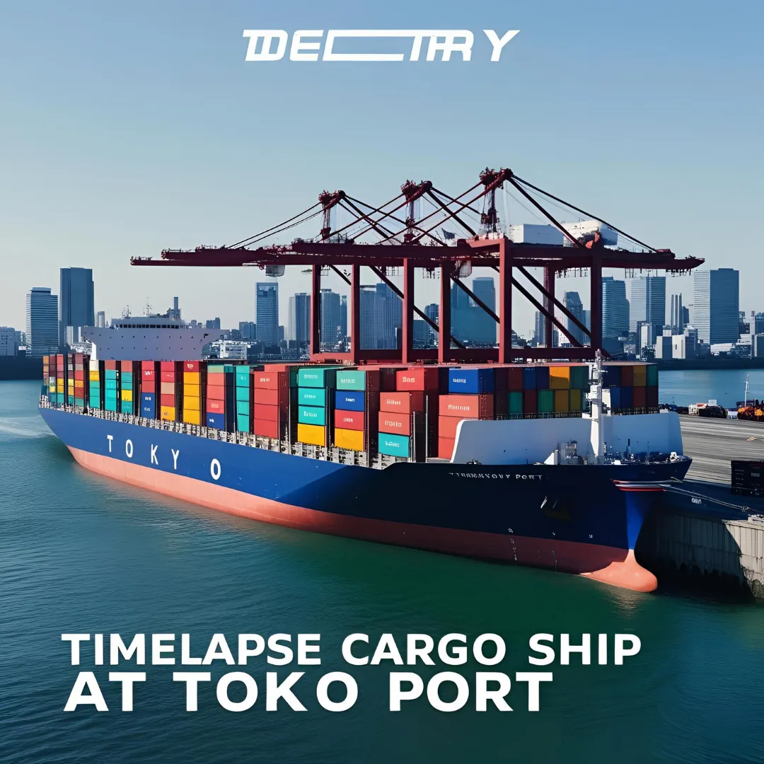 Timelapse Cargo Ship at Tokyo Port - Cinematic Stock Video for Sports, Fitness & Vehicle Visuals