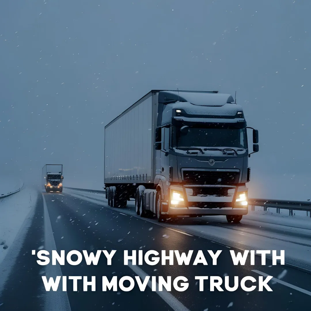 Snowy Highway with Moving Truck - Cinematic Stock Video for Dynamic Sports and Fitness Visuals