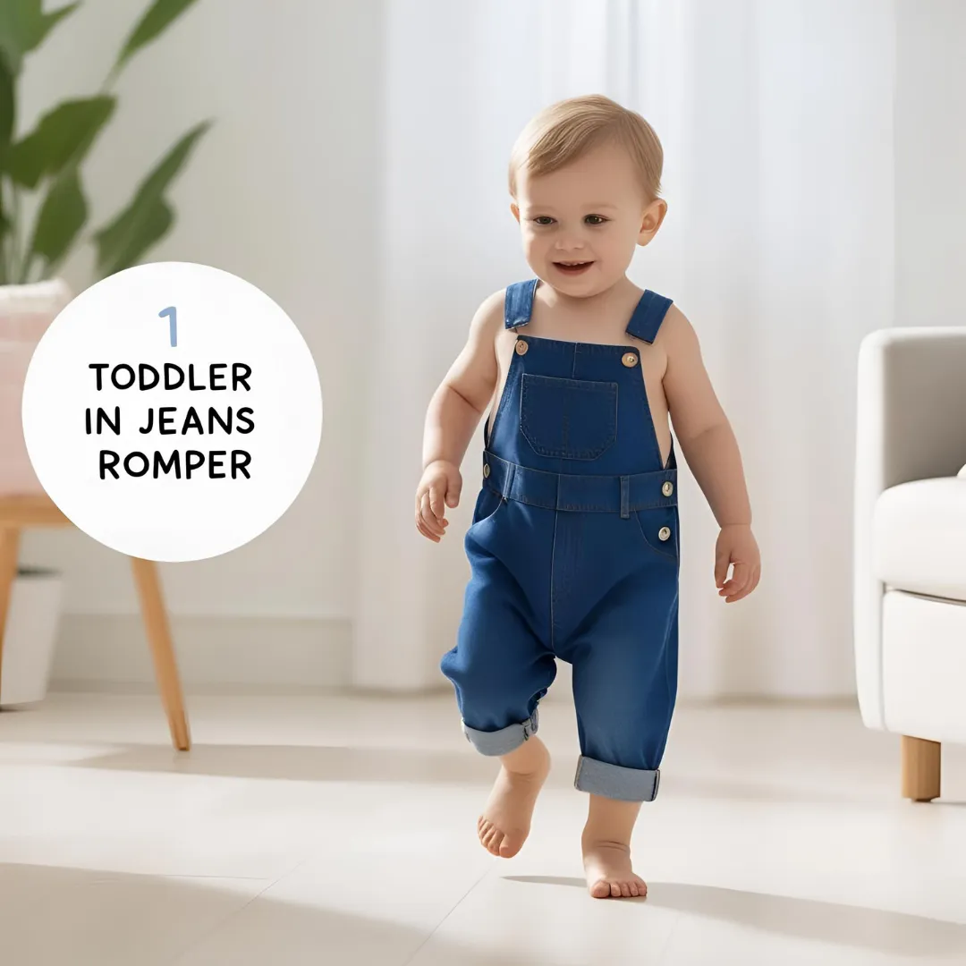 Toddler Walking in Jeans Romper - Cinematic Lifestyle Stock Video for Family & Children Projects