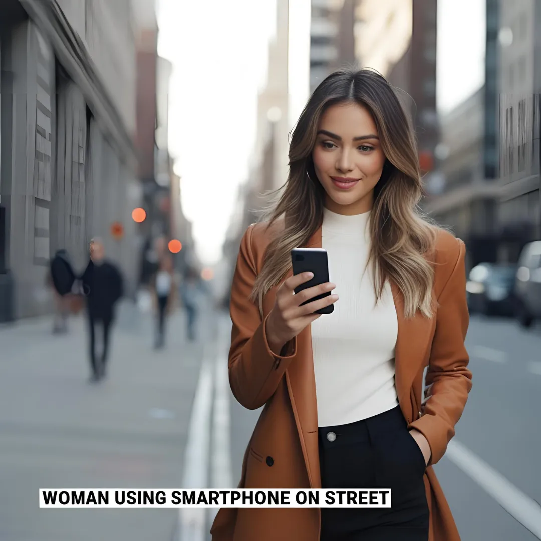 Woman Using Smartphone on Street - Dynamic Lifestyle Stock Video for Family & Social Content Creators 2025