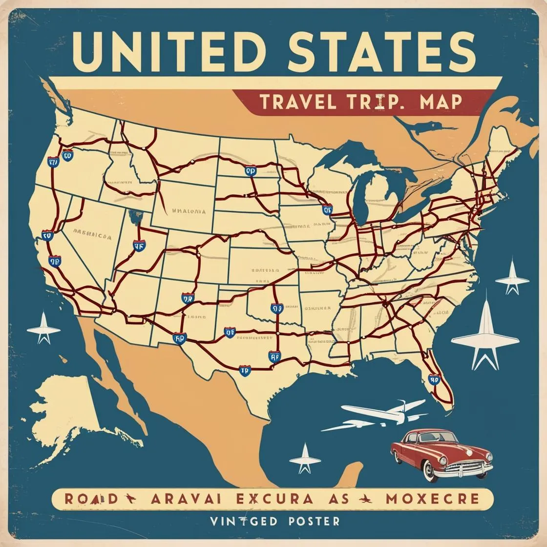USA Map - Road Trip Dreams - Cinematic Travel Stock Video for Adventure Filmmakers and Tourism Creators
