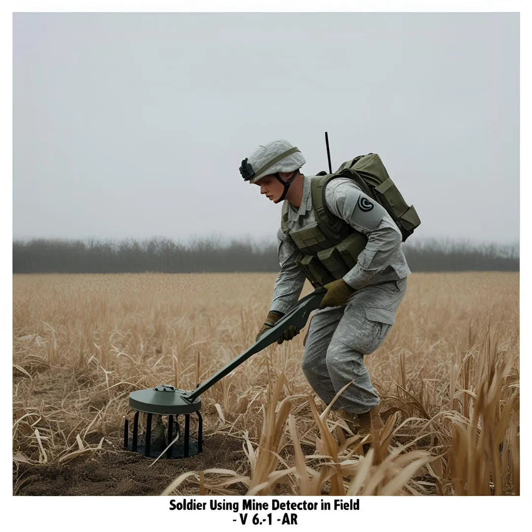 Soldier Using Mine Detector in Field - Cinematic Military Security Stock Video for Tactical and Training Use