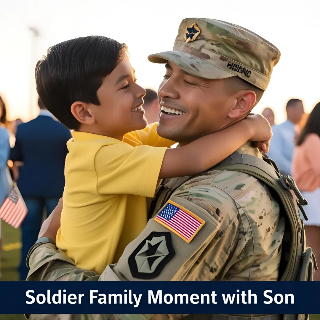 Soldier Family Moment with Son - Cinematic Military Stock Video for Emotional Storytelling and Security Campaigns