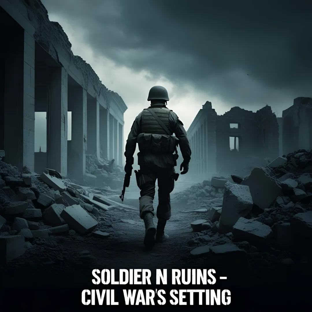 Soldier in Ruins - Civil War Setting - Cinematic Military Stock Video for Security and Historical Projects