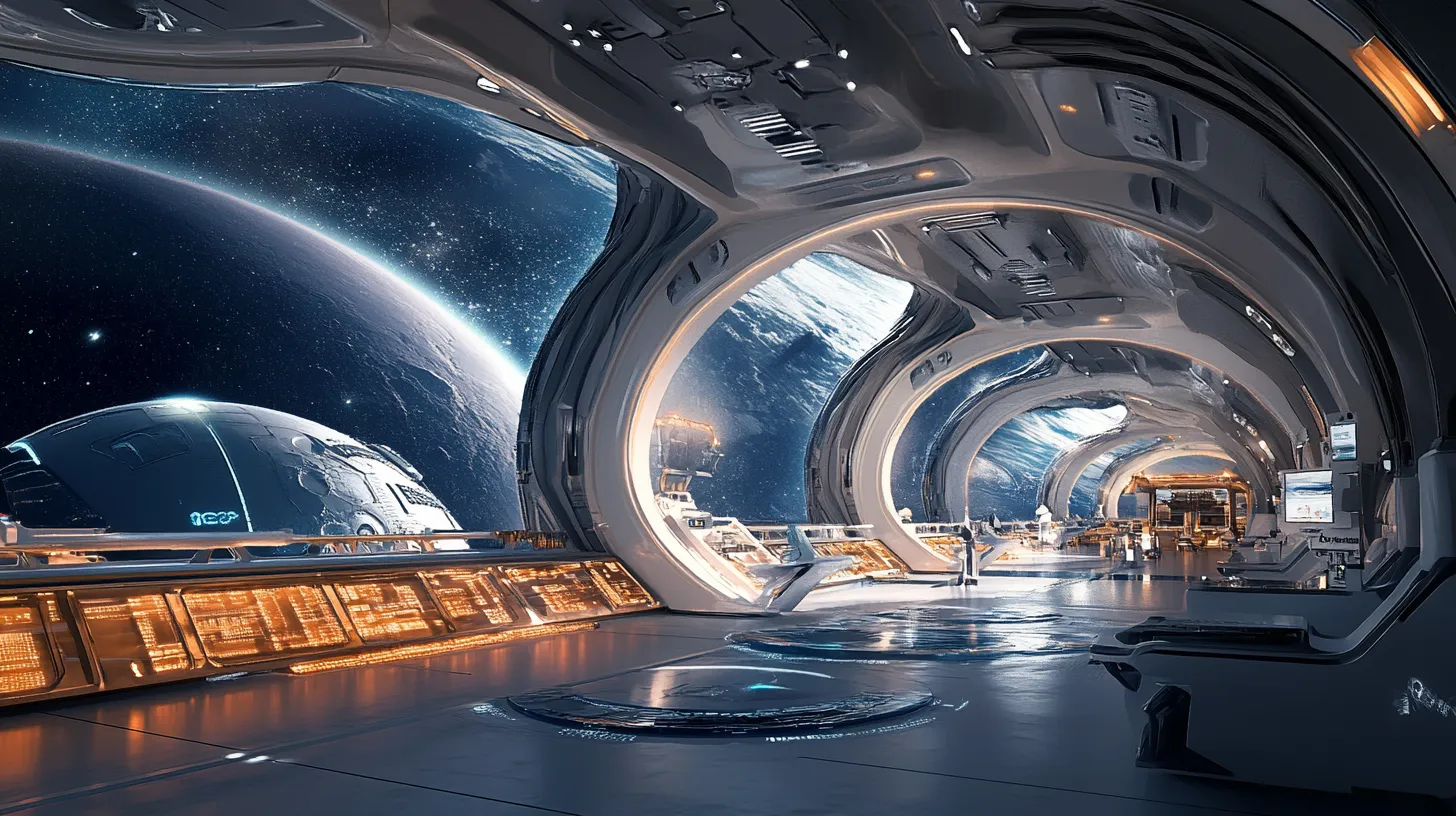 Starbridge Terminal Quantum Docking Nexus - Futuristic Sci-Fi Digital Environment Art for Immersive Visual Projects