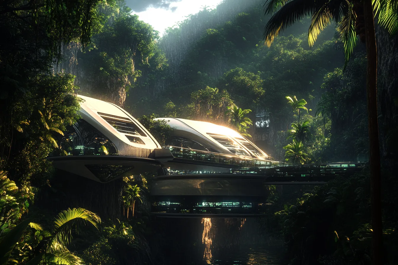 Xenothorp Research Hub Jungle Tech Outpost - Futuristic Sci-Fi Digital Environment Art for Immersive Worldbuilding and Game Design