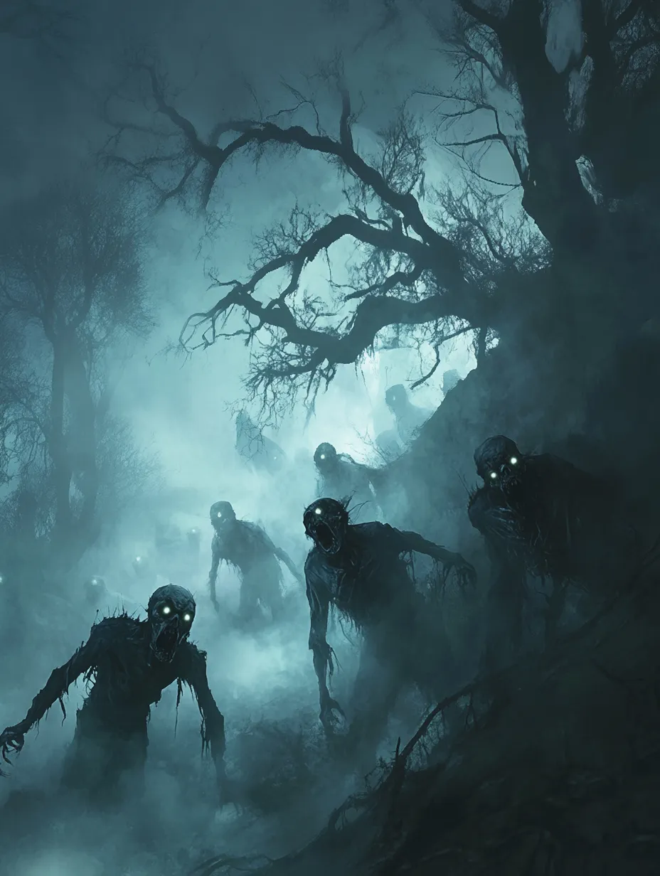 Zombie Horde Staggering Through Streets - Dark Horror Art for Immersive Visual Storytelling and Creative Projects
