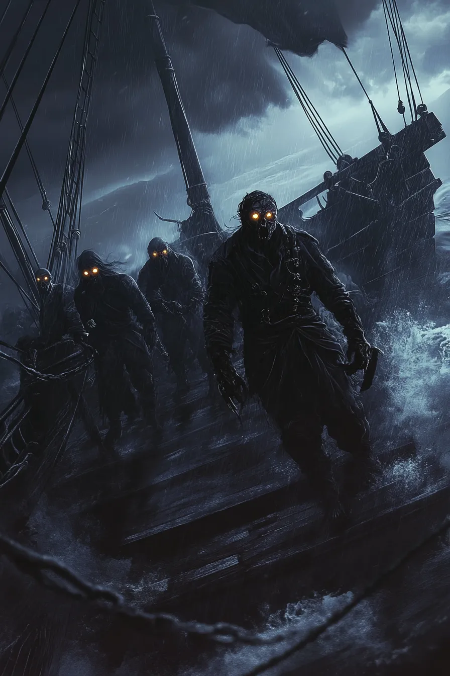 Undead Pirate Crew Illustration - Dark Horror Art for Spooky Storytelling and Creative Projects