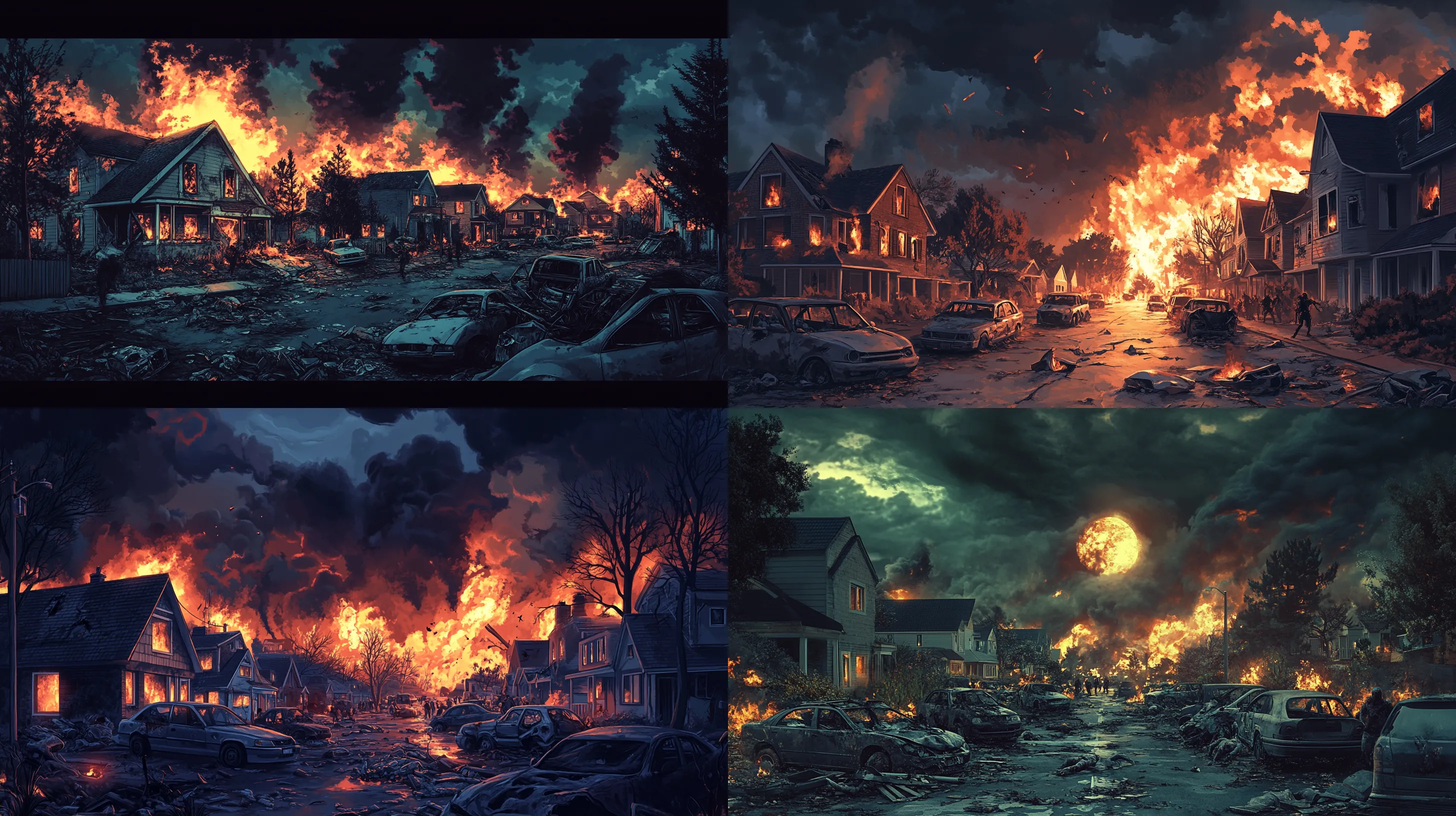 Zombie Apocalypse in Suburban Street - Dark Horror Art for Immersive Visual Storytelling and Creative Projects