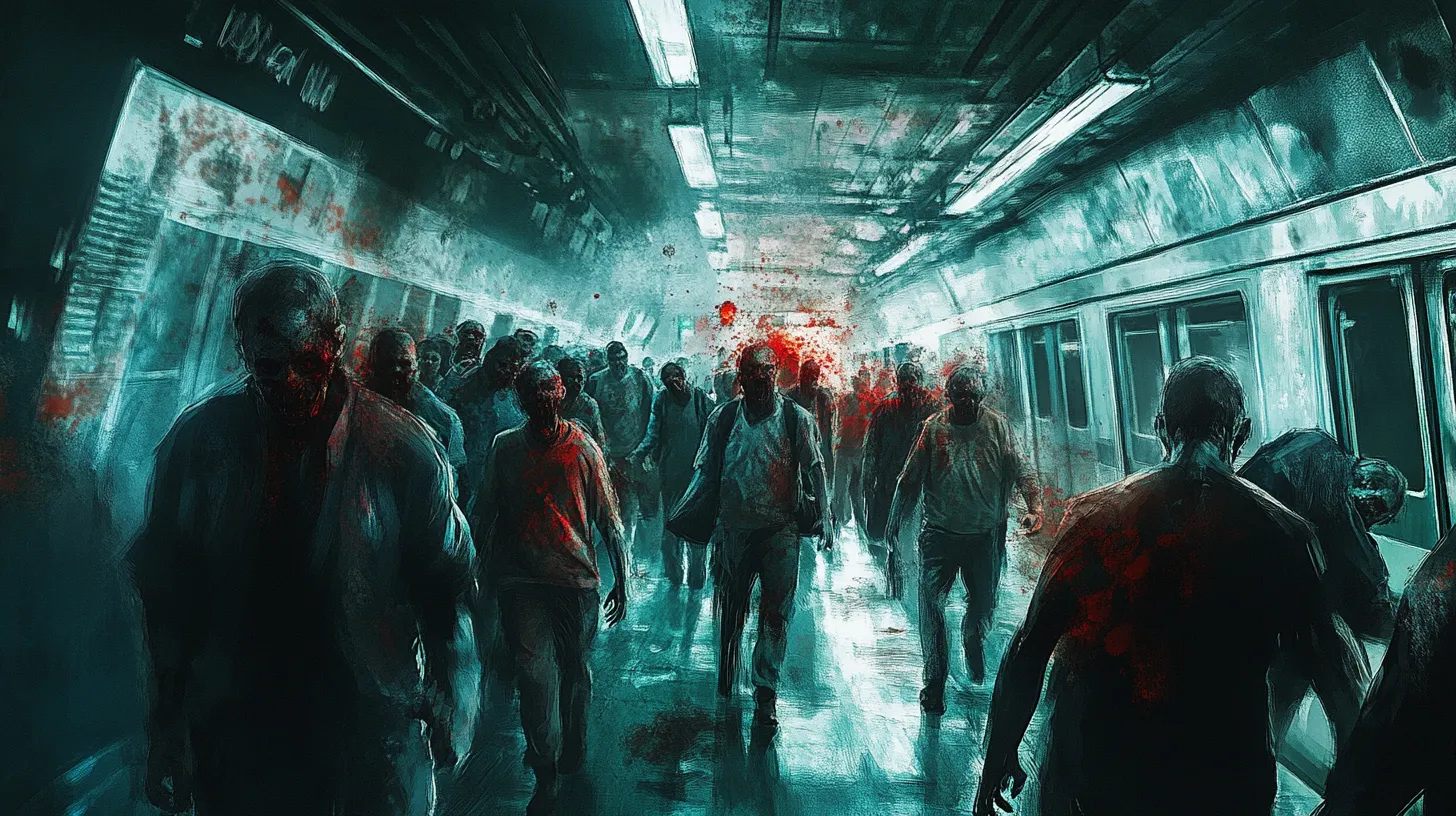 Zombie Outbreak in Crowded Subway - Dark Horror Art for Thrilling Visual Storytelling and Creative Projects