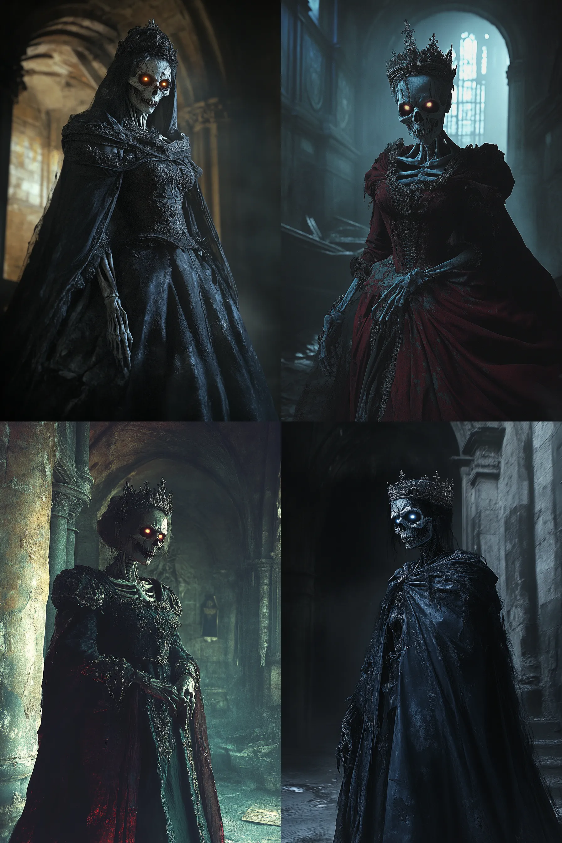 Undead Queen in Decaying Throne Room - Dark Horror Art for Atmospheric Storytelling and Visual Impact