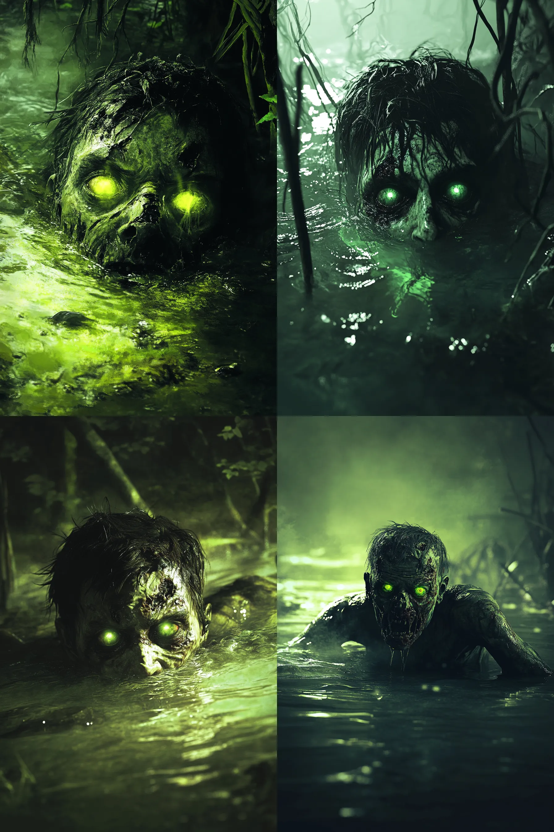 Zombie Emerging From Dark Swamp - Haunting Horror Illustration for Dark Art Enthusiasts and Creative Projects