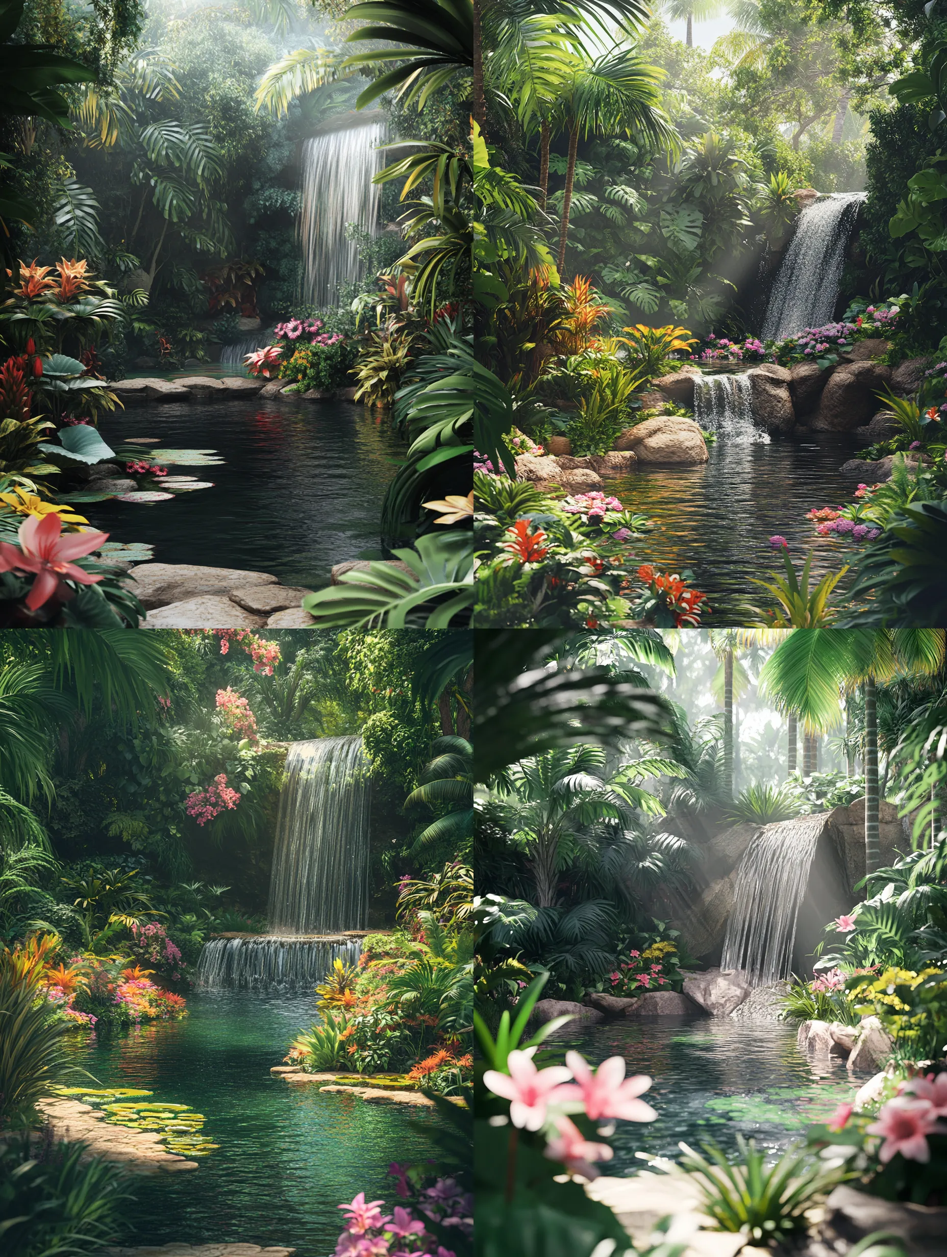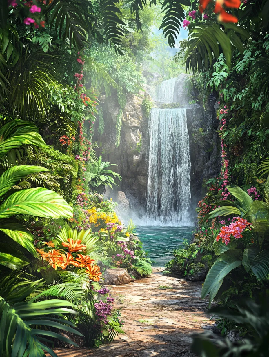 Tropical Garden Serenity - Serene Tropical Landscape Art for Relaxing Spaces and Creative Decor