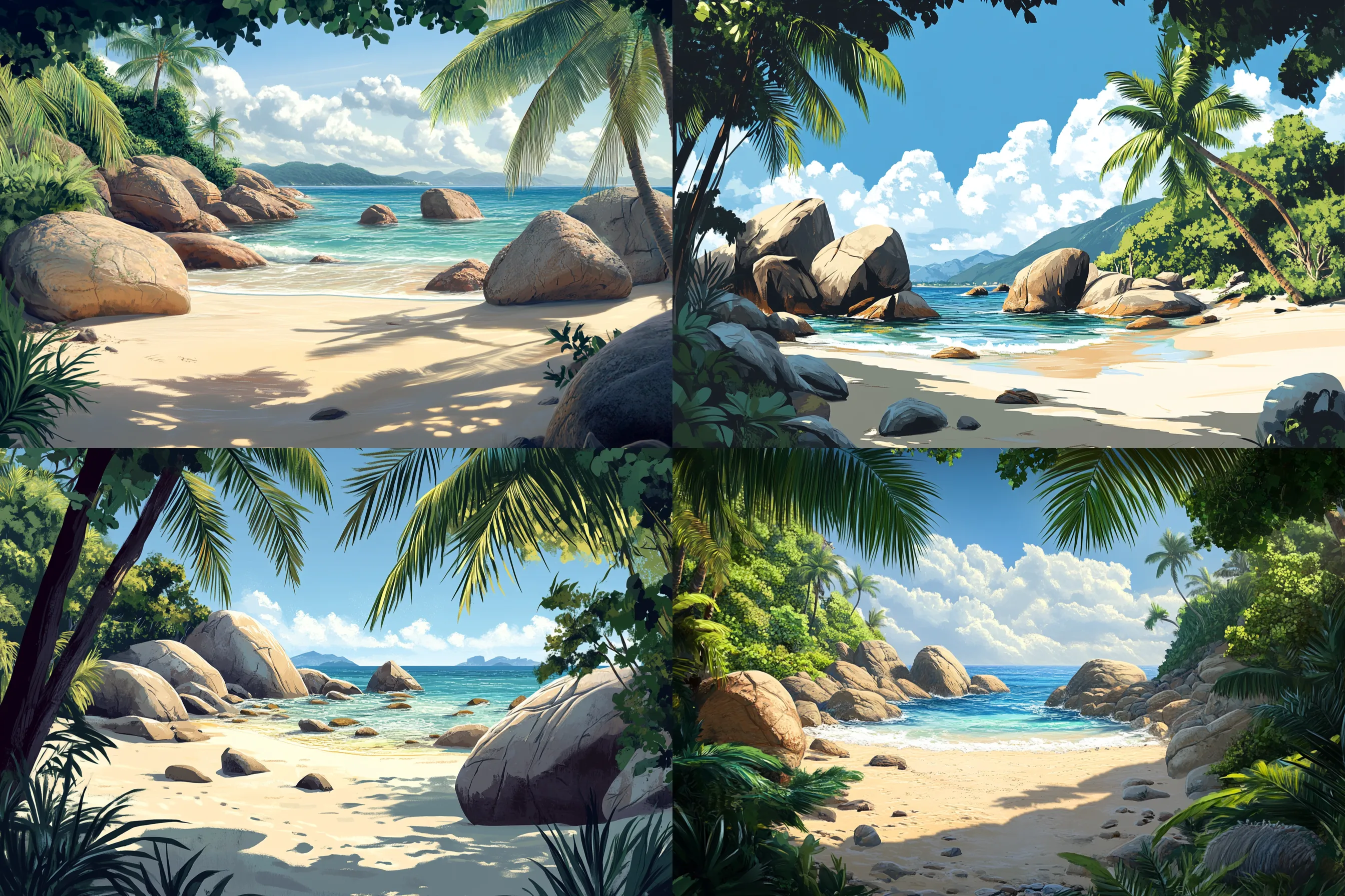 Secluded Beach Cove - Serene Tropical Landscape Art for Calming Spaces and Creative Projects