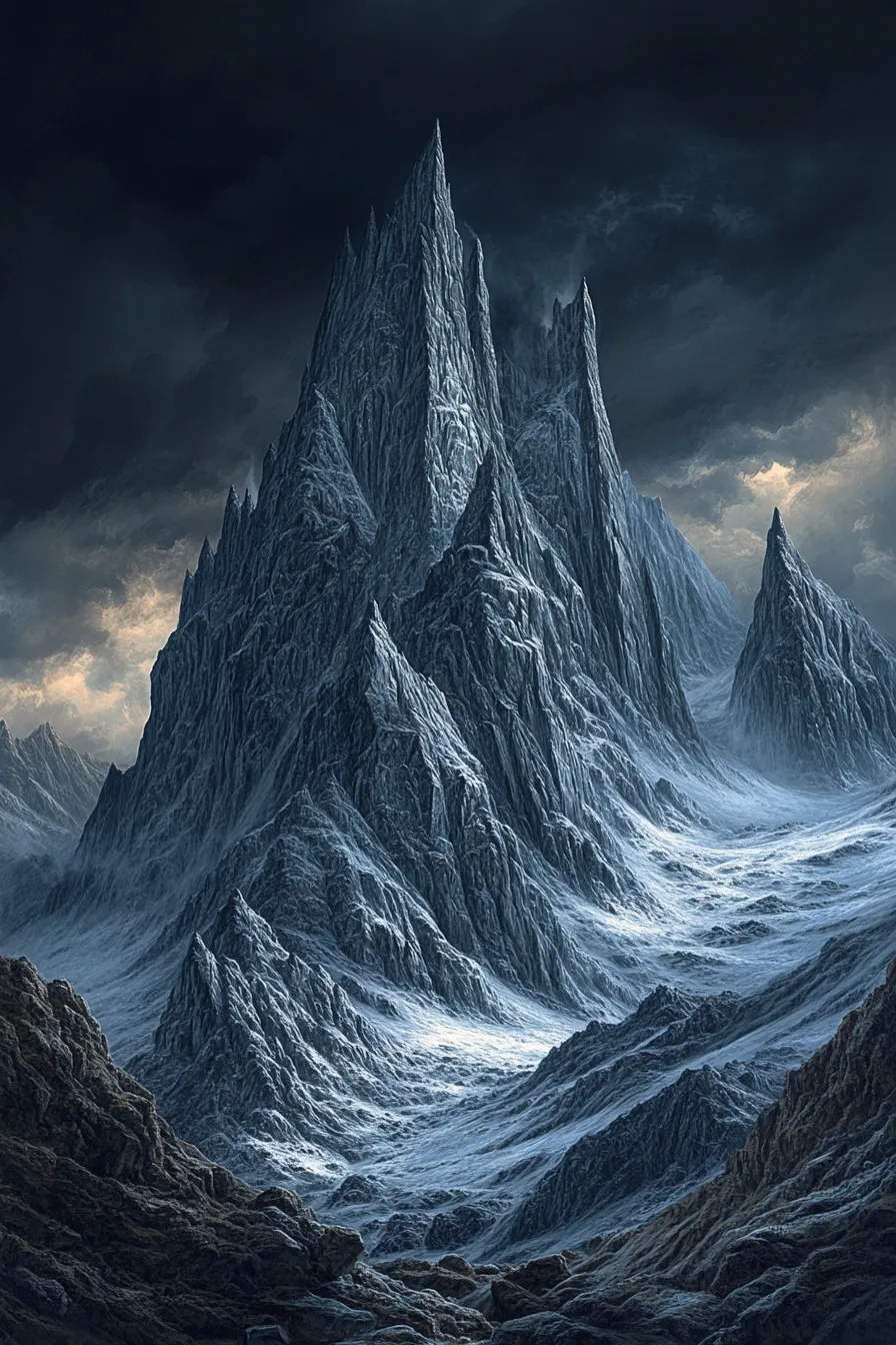 Winter Mountain Scene - Serene Snowy Mountain Landscape Art for Calm and Inspiring Visual Spaces