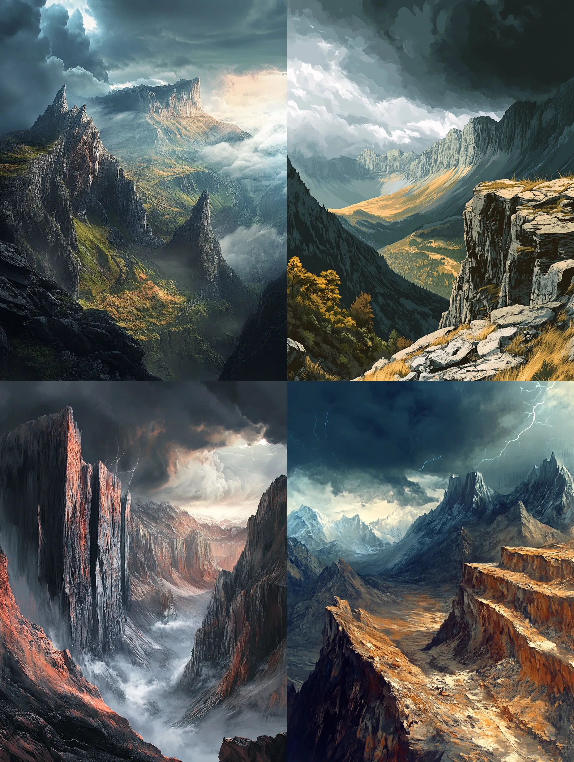 Rugged Mountain Landscape - Stunning Sunlit Plains Artwork for Nature Lovers and Creative Projects