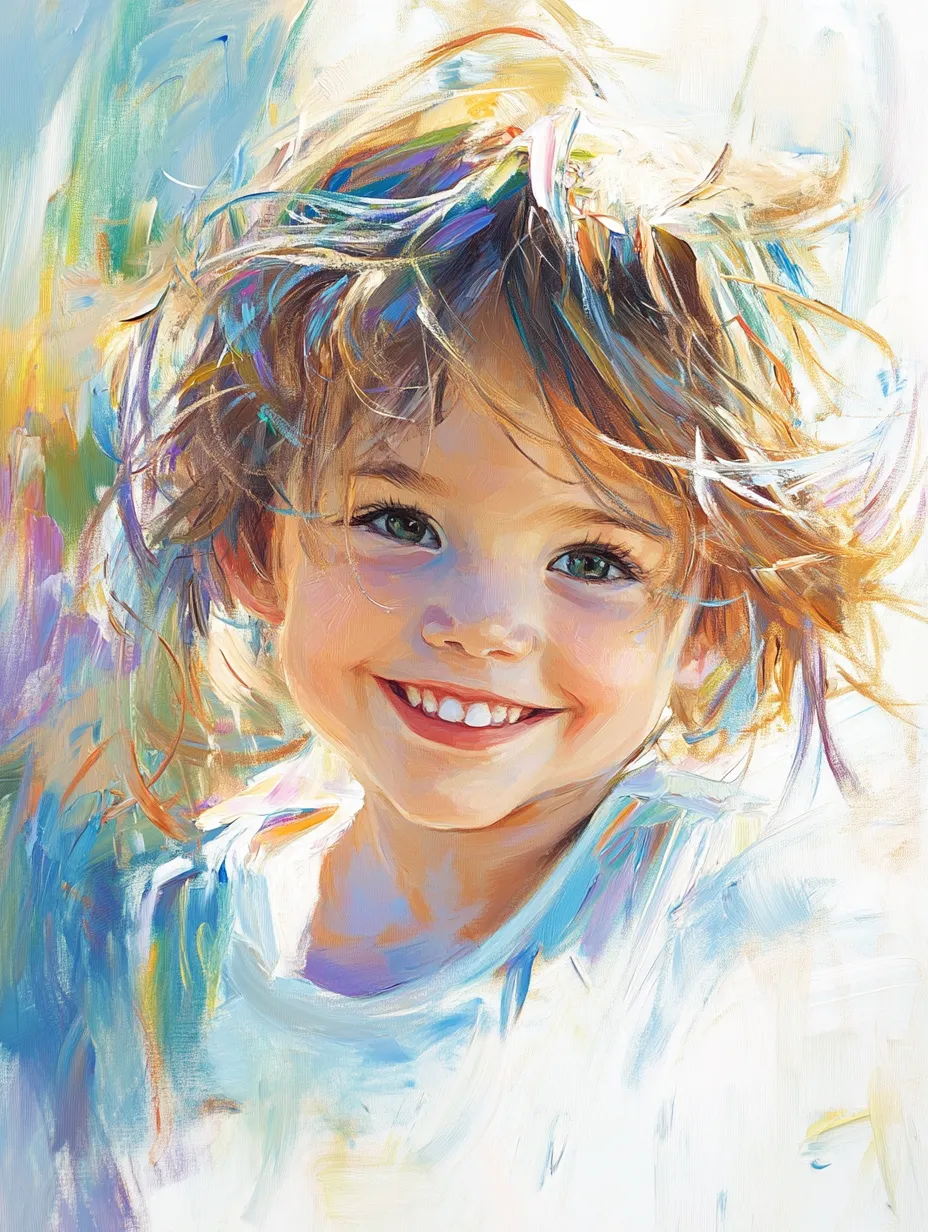 Tousled Hair Child Portrait Painting - Timeless Canvas Portrait Art for Emotional Home Decor and Personal Collections