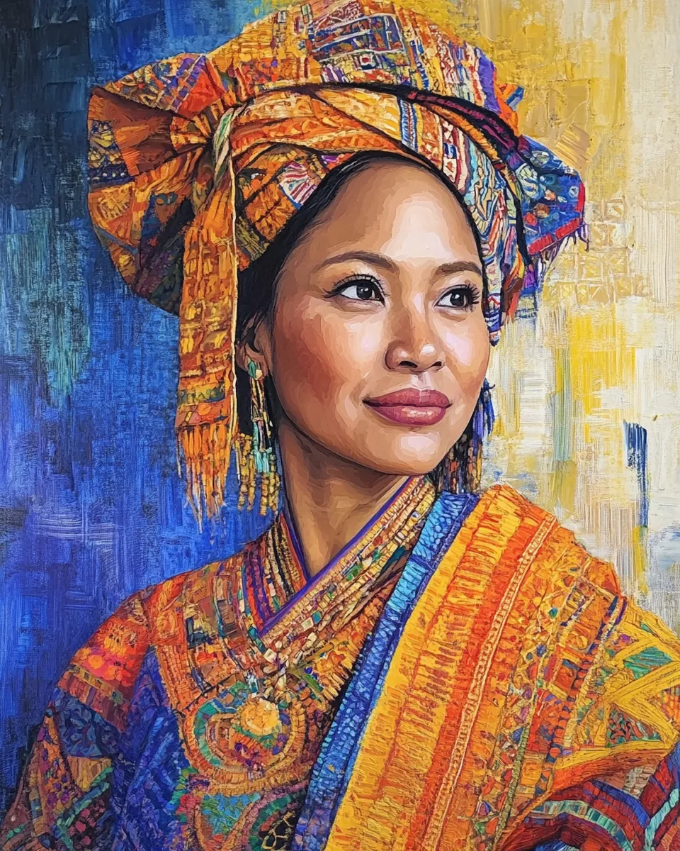 Traditional Cultural Dress Portrait - Timeless Painted Canvas Art Celebrating Heritage and Identity