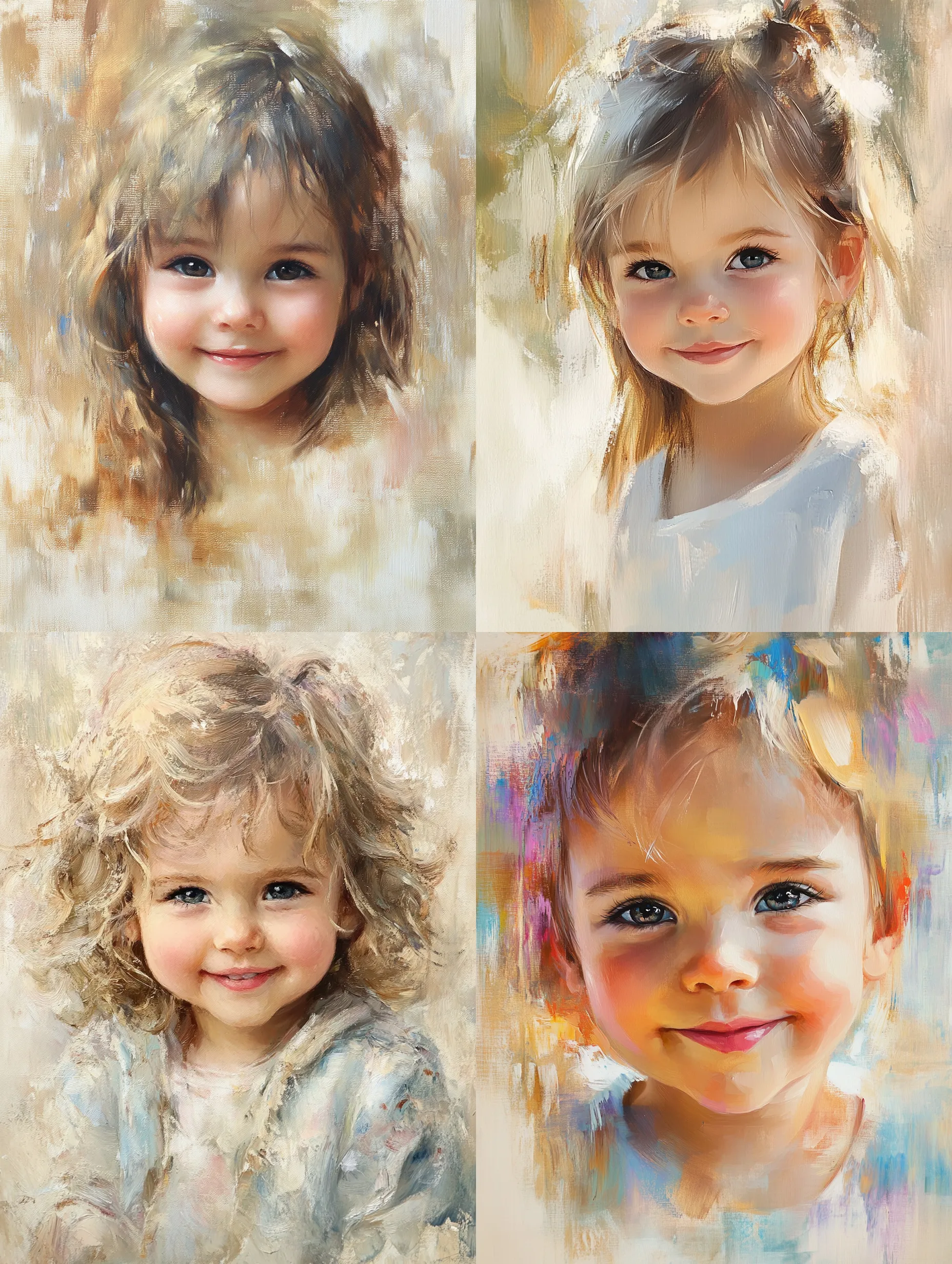 Shy Smiling Child Portrait Art - Timeless Canvas Legacy Painting for Emotional Home & Gallery Decor