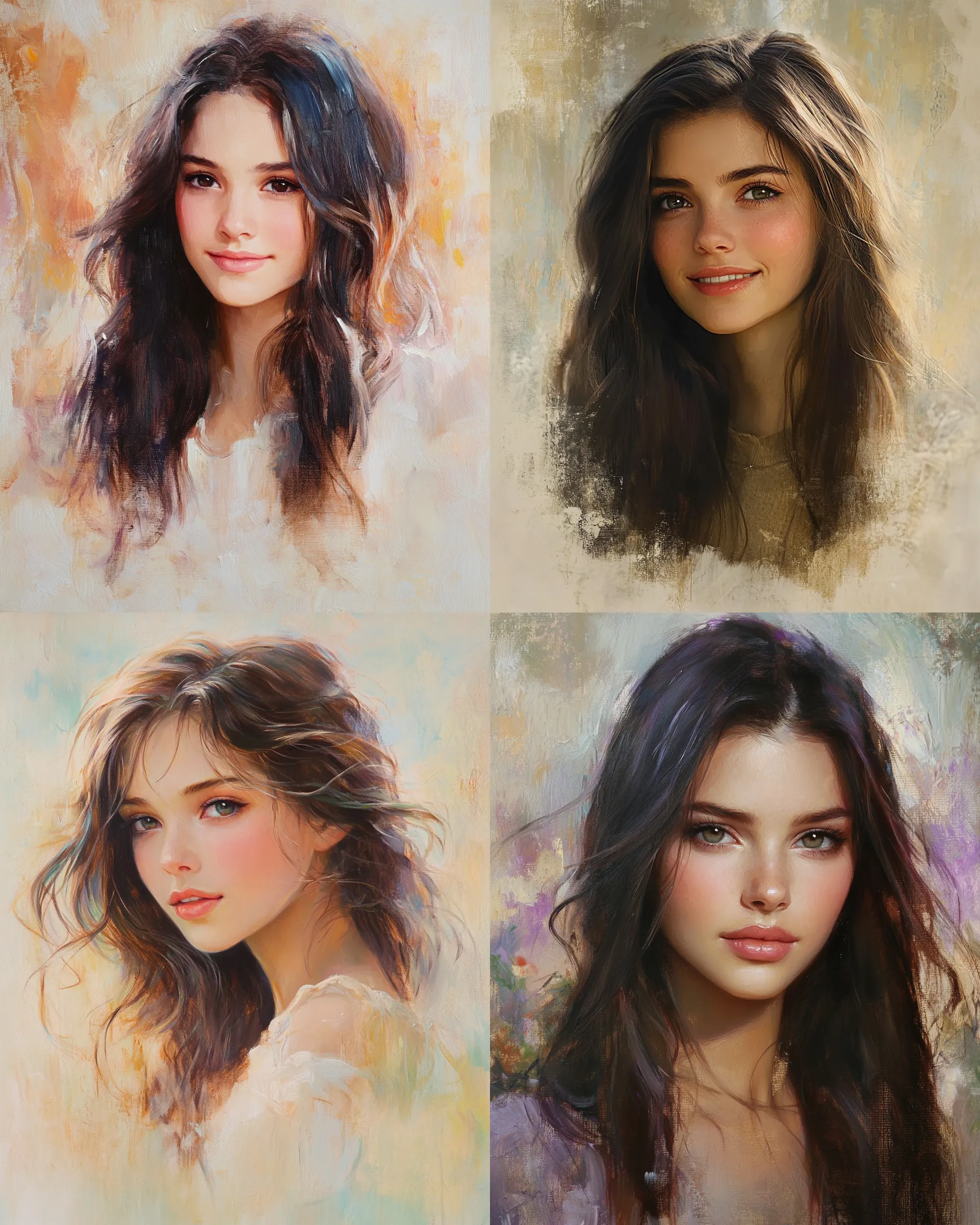 Young Woman with Flowing Hair Art - Classic Portrait Painting for Elegant Home and Gallery Display