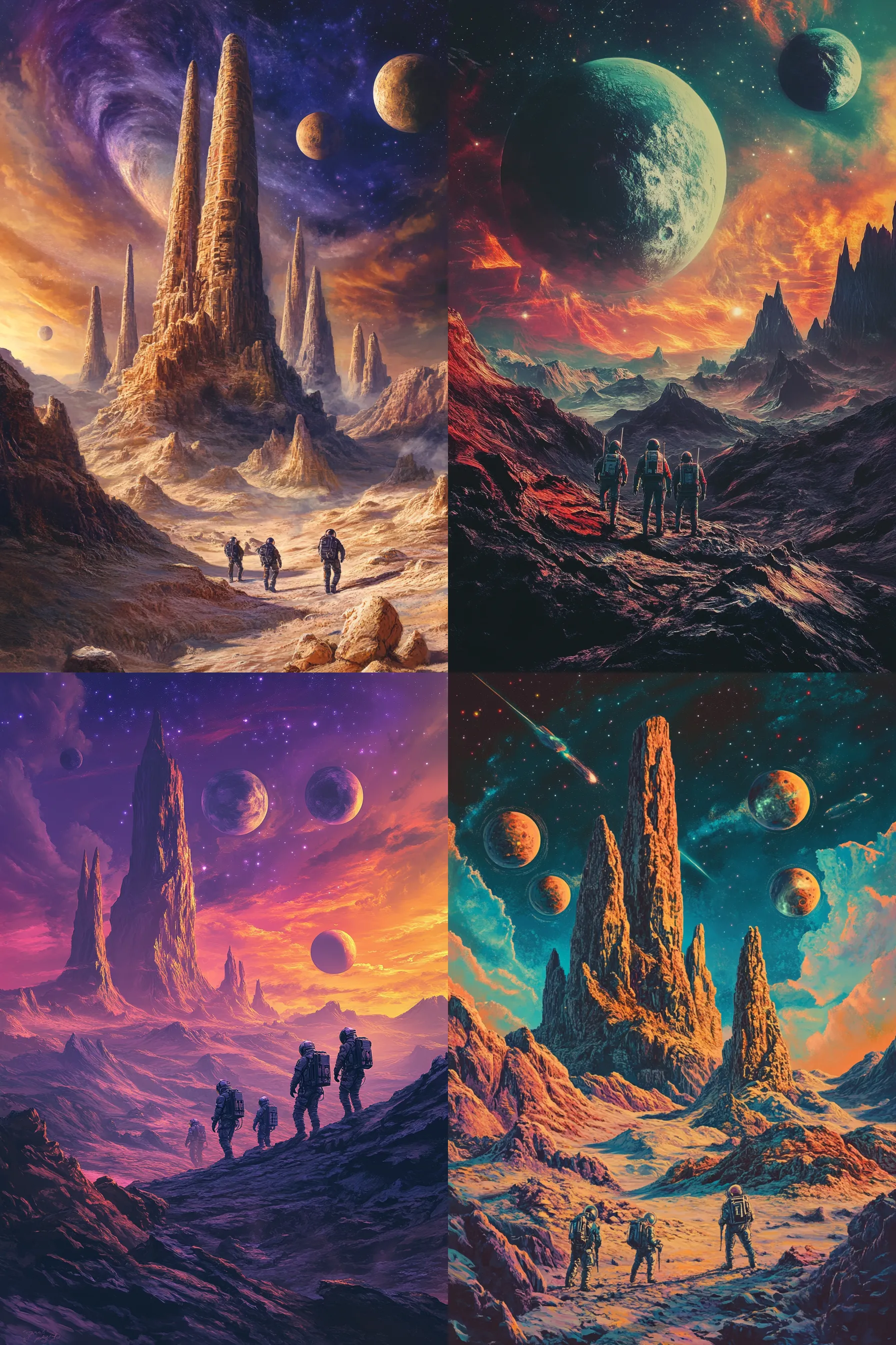 Team of Astronauts Setting Up Base on an Exoplanet - Immersive Sci-Fi Space Exploration Art for Creators and Visionaries