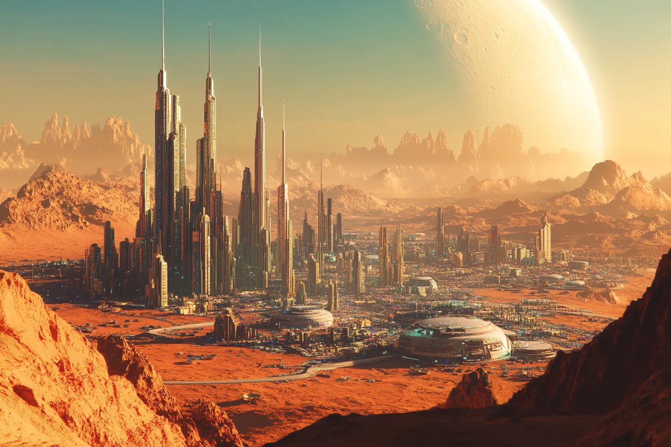 Futuristic City on Mars with Domes and Rovers - Sci-Fi Exploration Illustration for Visionary Creators and Space-Themed Projects