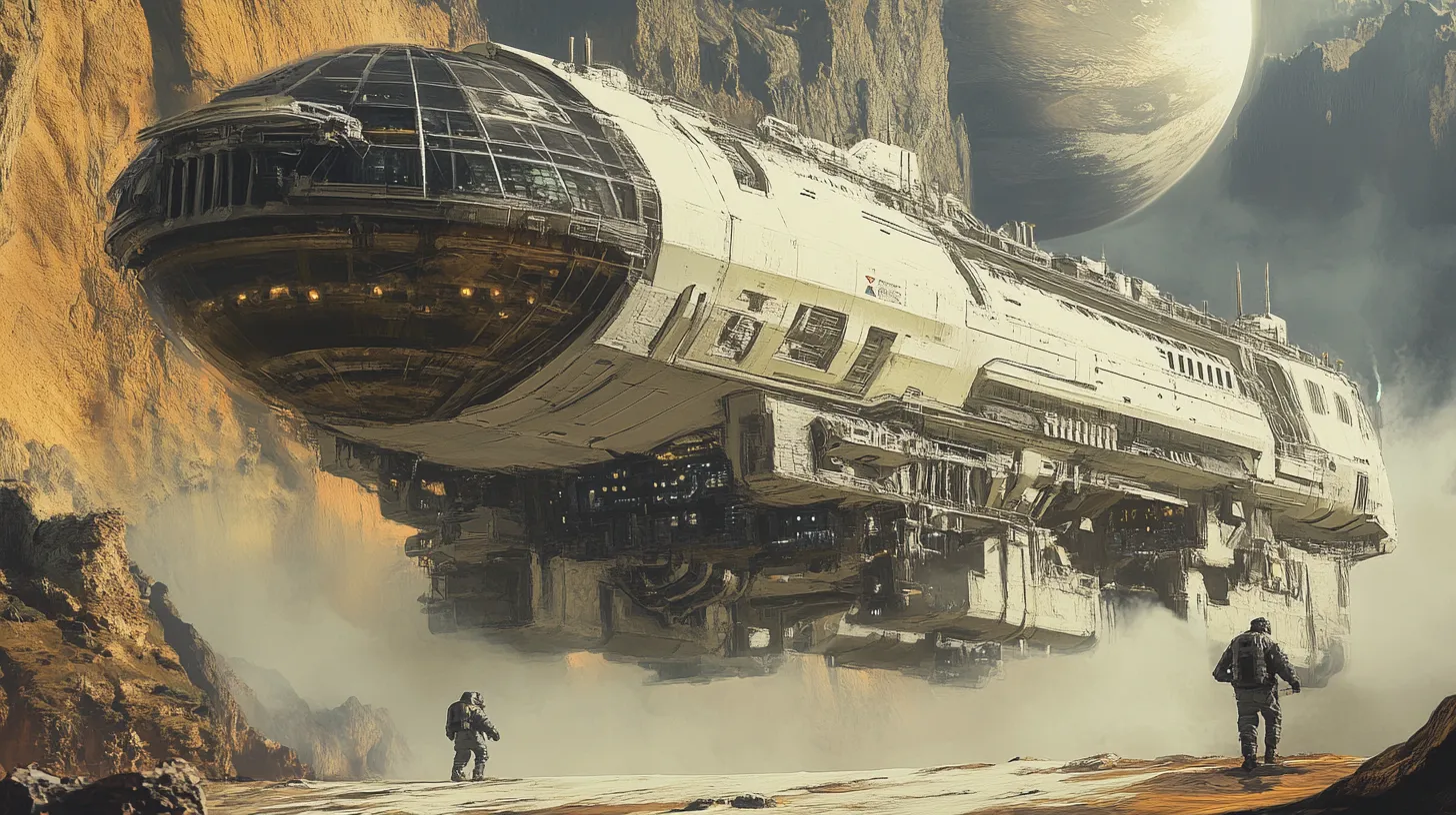 Massive Starship Preparing for Intergalactic Voyage - Sci-Fi Space Exploration Artwork for Creatives and Futurists
