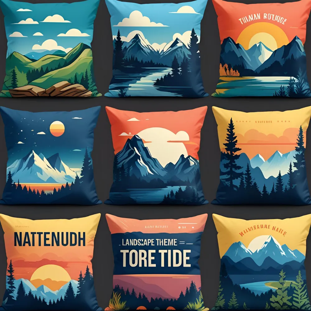 9 Landscape Themes - CDR Template Bundle - Versatile Vector Designs for Creative Pillow Art and Home Decor