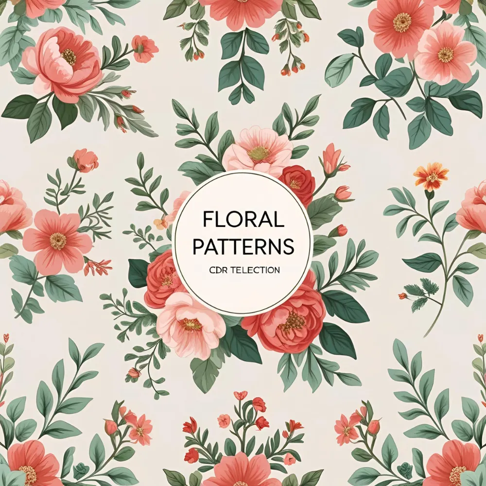 9 Floral Patterns CDR Template Collection - Elegant Vector Floral Designs for Creative Pillow Art and Home Decor Projects
