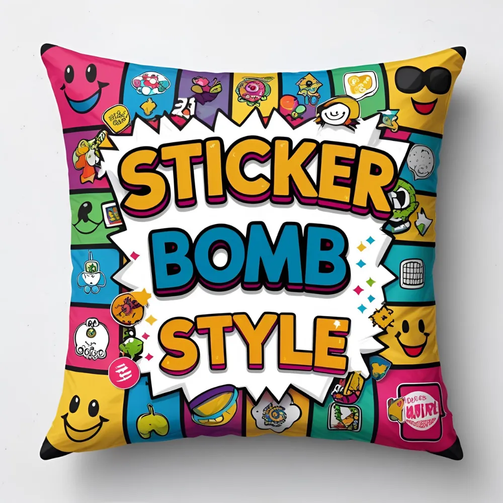 Sticker Bomb Style Sublimation Print Bundle - Vibrant Pillow Designs for Creative Home Décor and Crafting