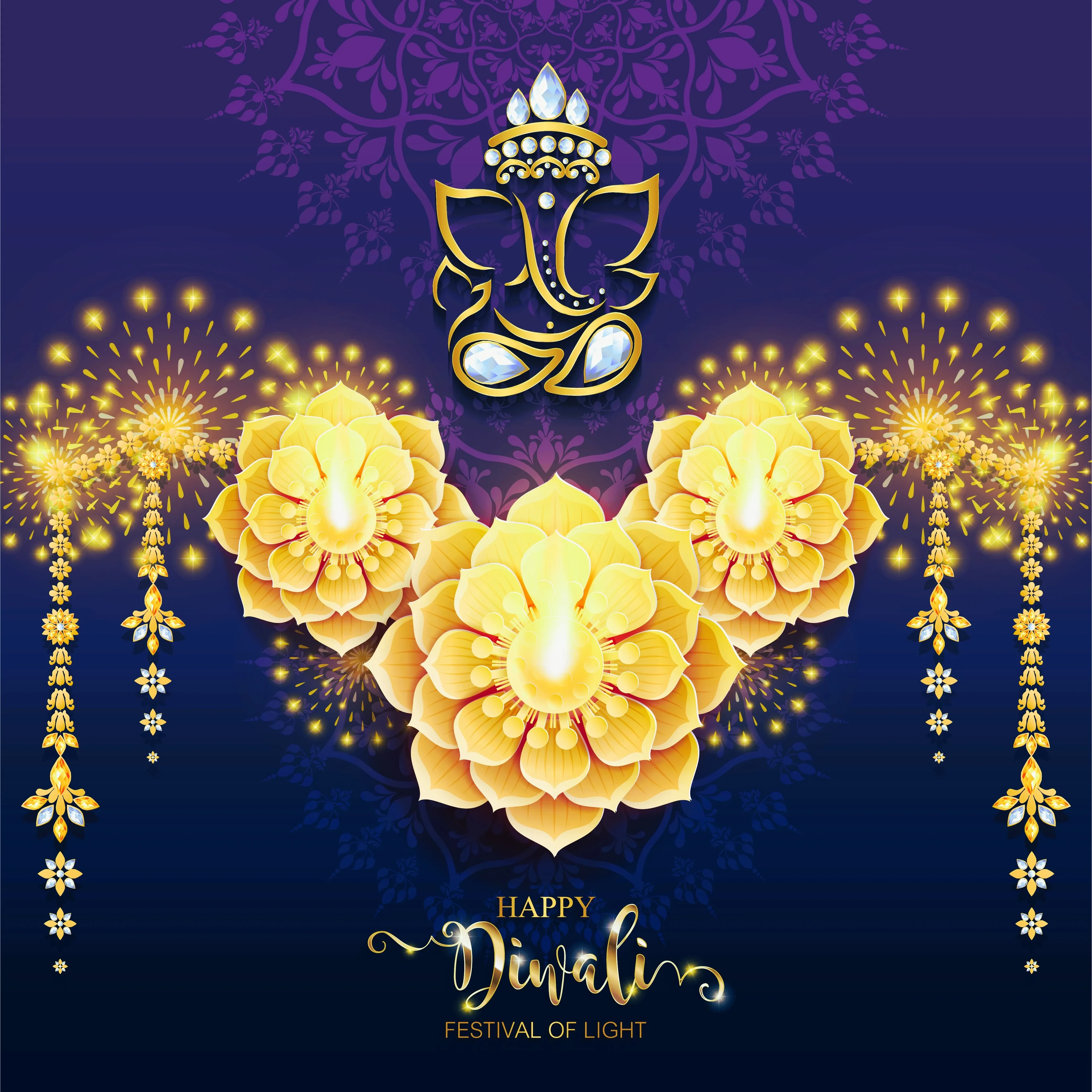 Diwali Poster Gold Diya & Crystal - Elegant Festive Illustration for Celebrations and Event Decor