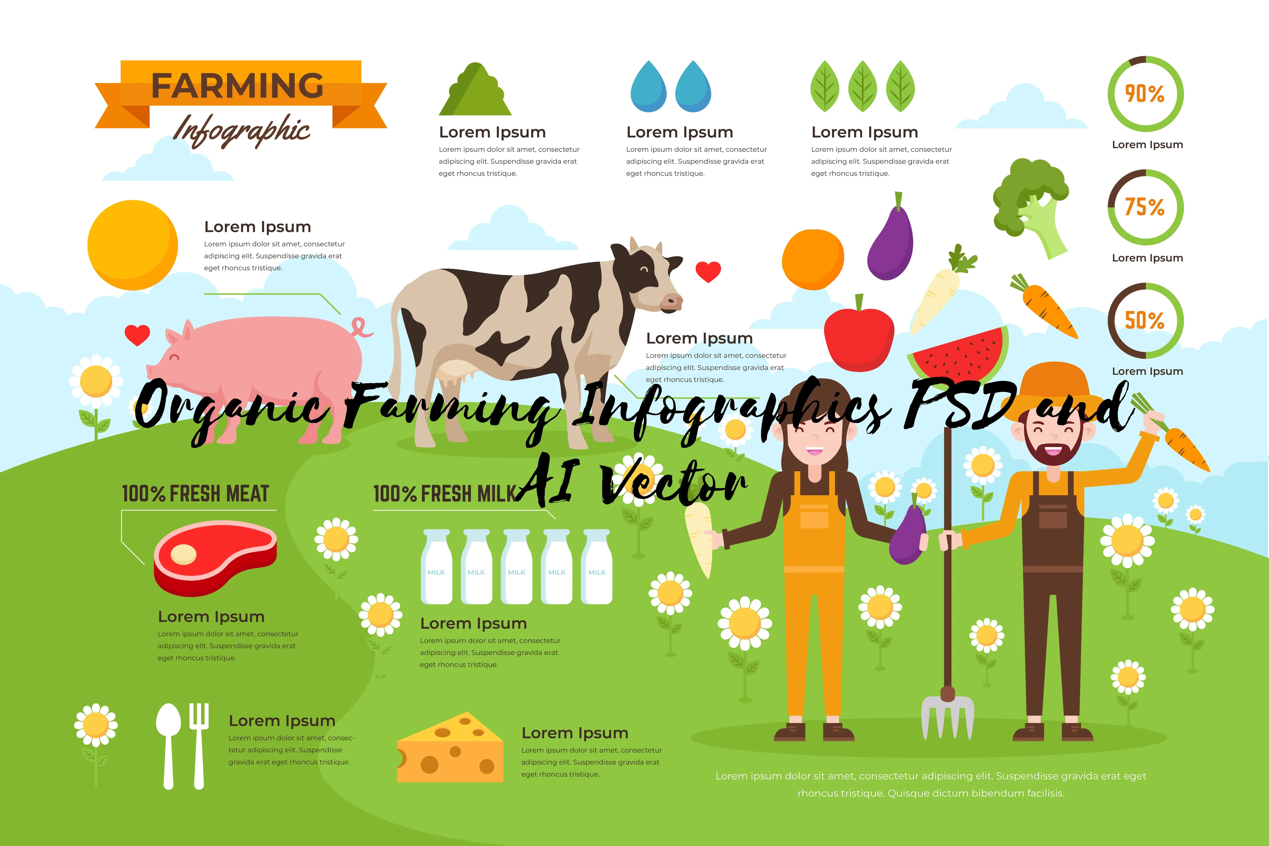 Organic Farming Infographics Studio - Editable Vector Infographic Templates for Sustainable Agriculture and Marketing