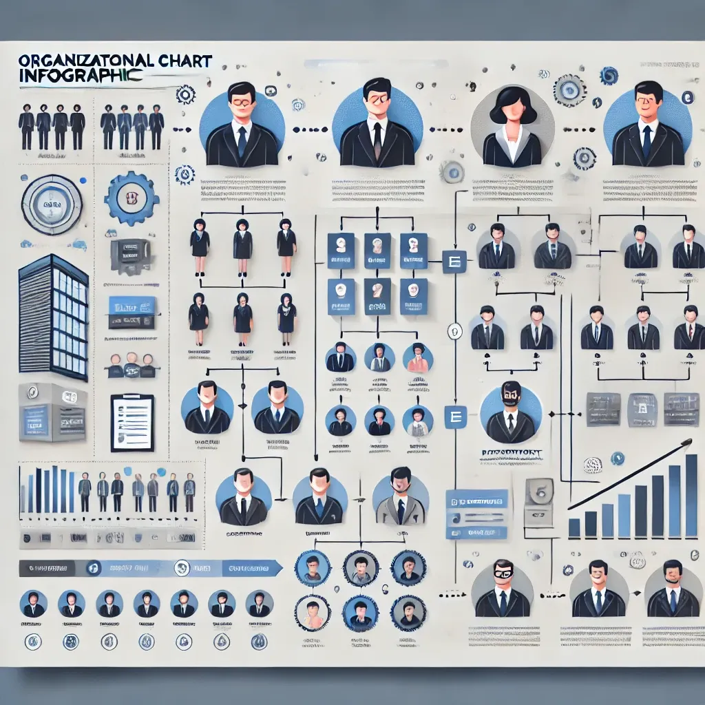 Organizational Chart Infographic - Business People Layout - Professional Infographic Design for Clear Corporate Structures and Team Visualization