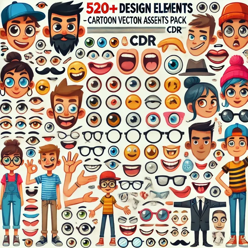 520+ Design Elements Cartoon Vector Assets Pack - Versatile Characters for Creative Projects and Branding