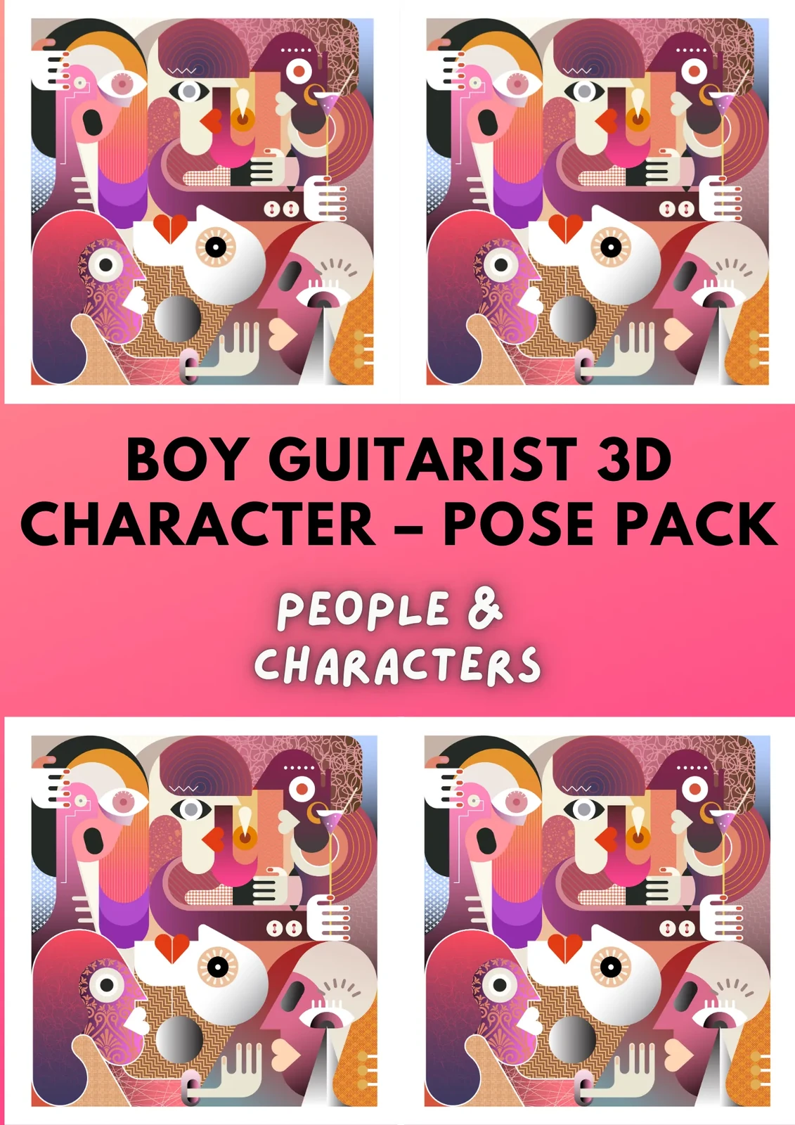 Boy Guitarist - 3D Character Pose - Realistic 3D Musician Model for Creative Projects and Animations