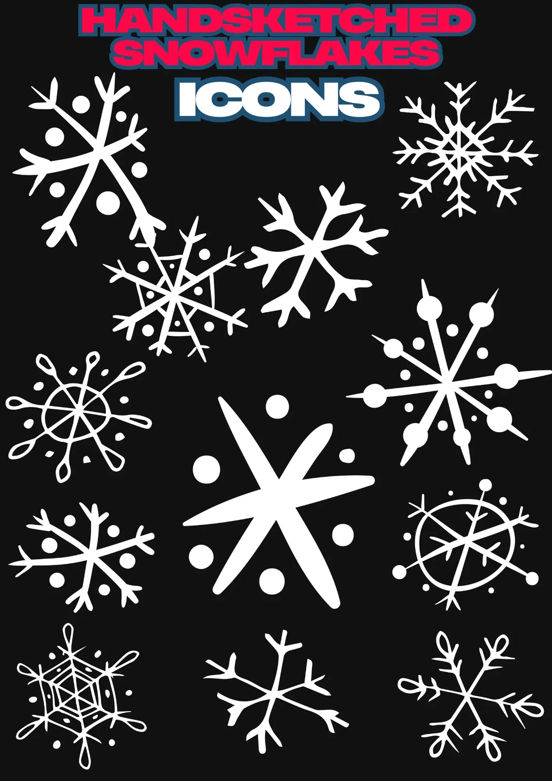 Snowflake Icons - Hand-Sketched Winter Doodles - Charming Winter-Themed Vector Icons for Creative Projects and Seasonal Designs