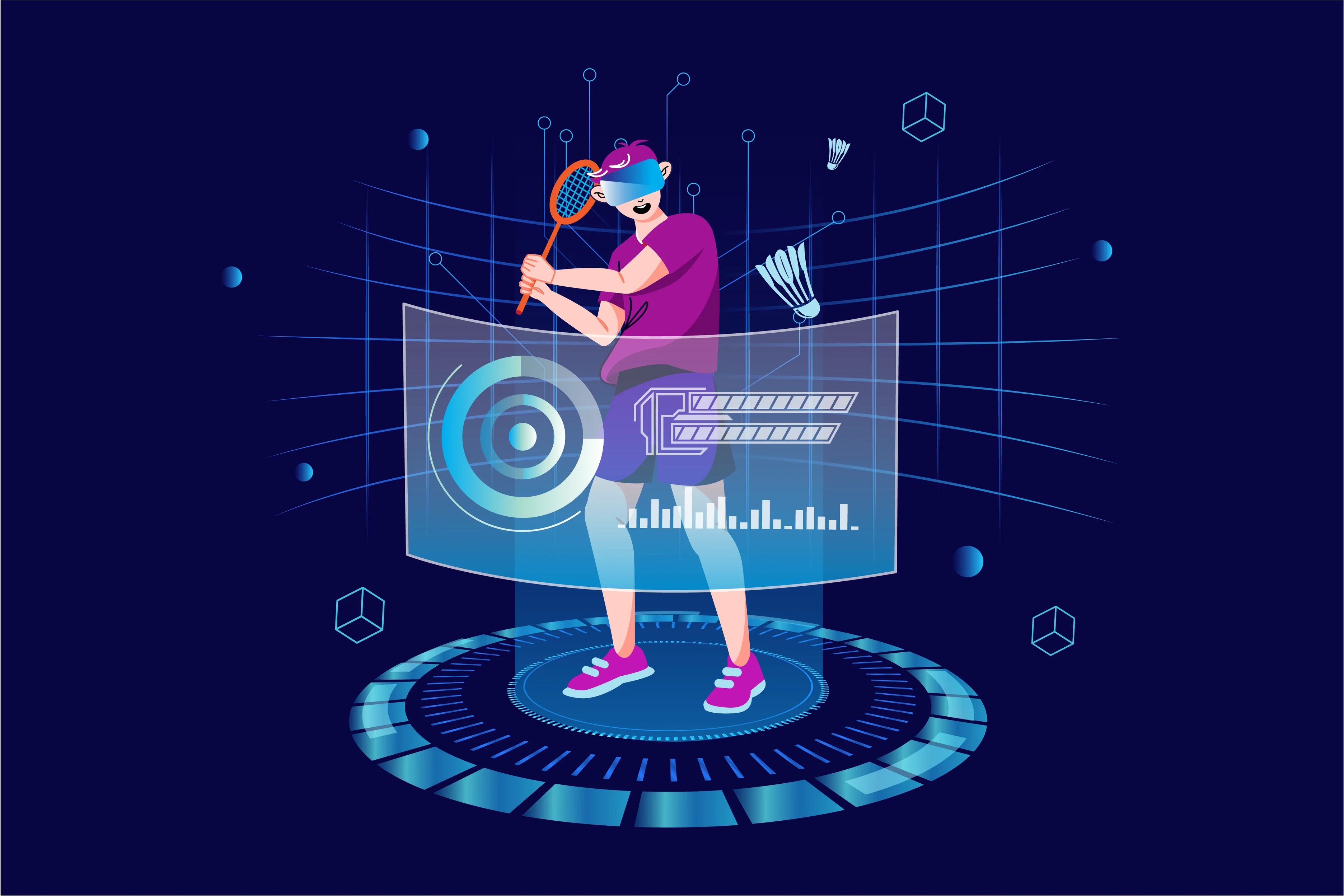 Metaverse Fitness VR Sports Illustration Concept - Immersive Virtual Reality Fitness Art for Health & Wellness Creators