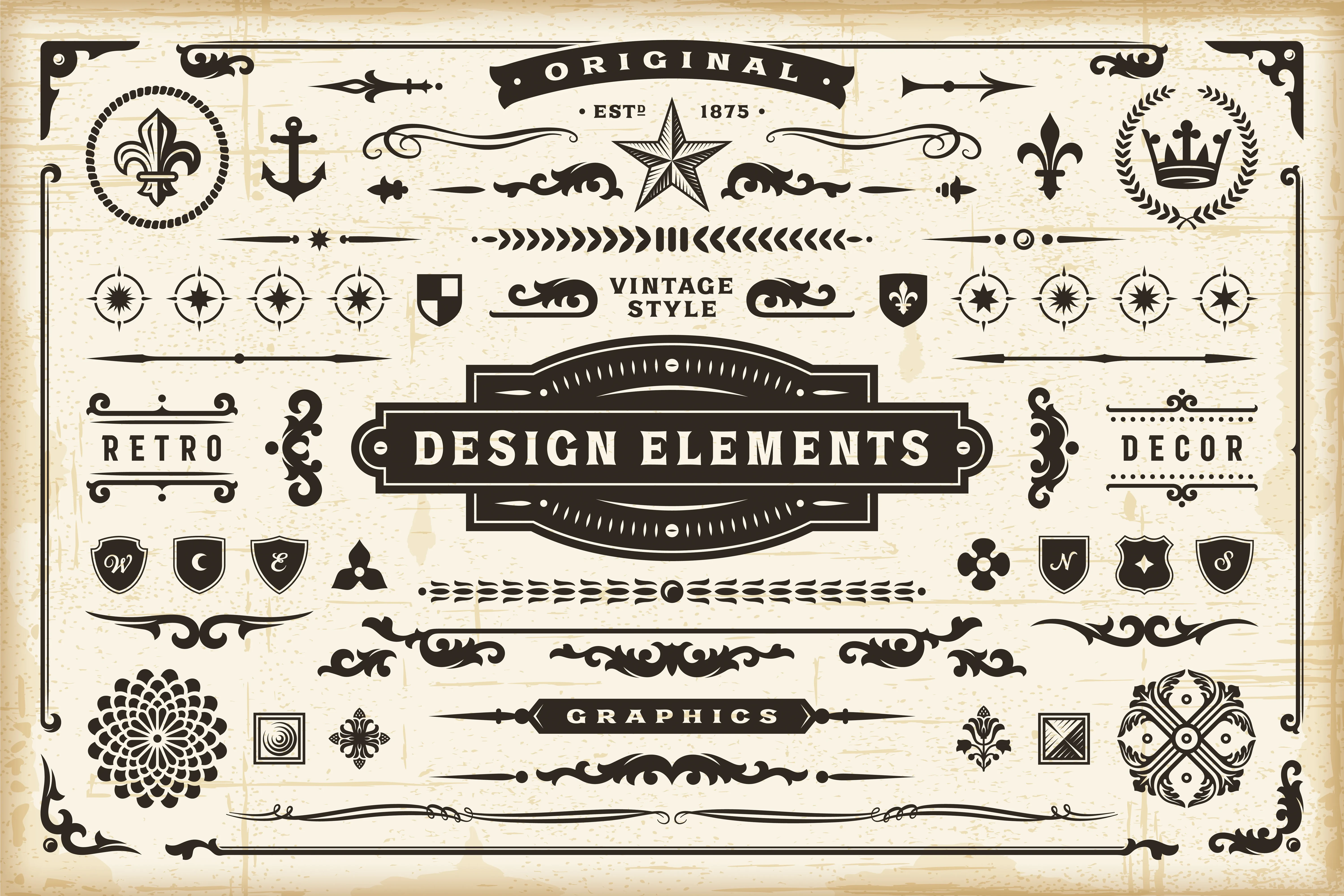Vintage Design Elements Decorative Clipart Set - Timeless Mixed Objects for Creative and Commercial Projects