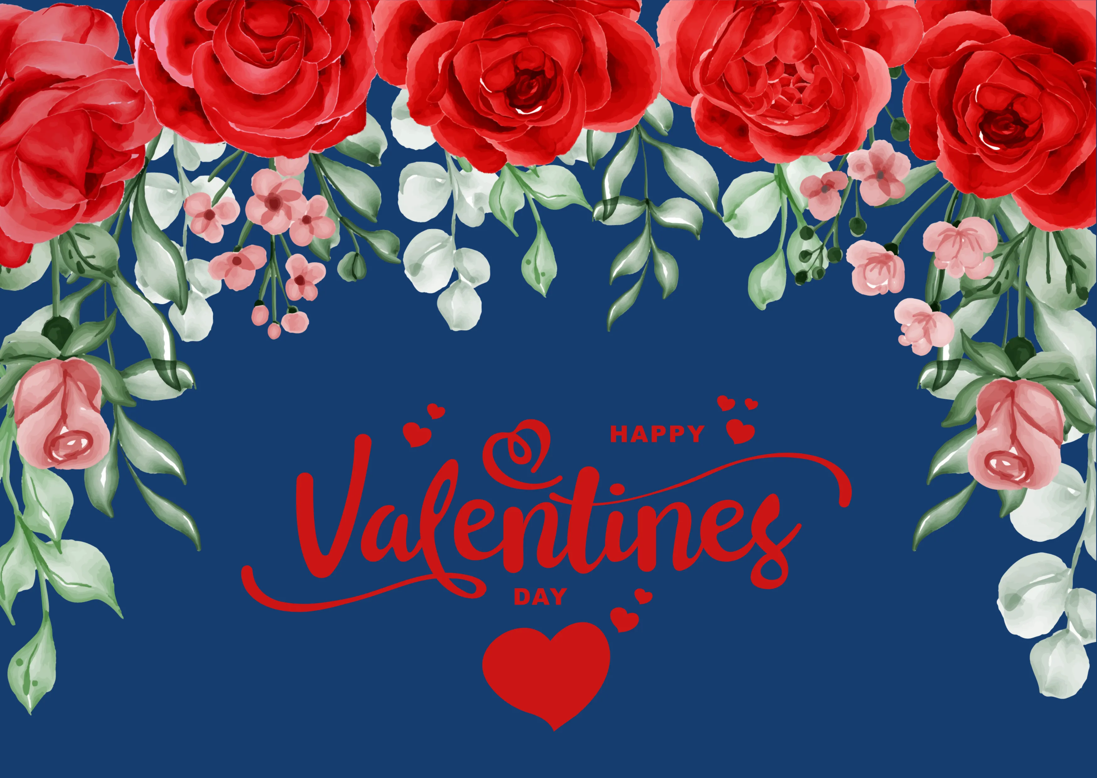 Red and Pink Watercolor Happy Valentine's Day Postcard - Romantic Artistic Greeting for Heartfelt Messages and Seasonal Celebrations