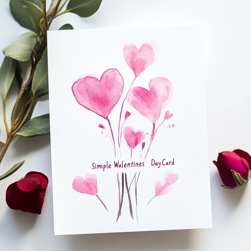 Simple Watercolor Valentines Day Card - Elegant Romantic Greeting for Heartfelt Messages and Personal Connections
