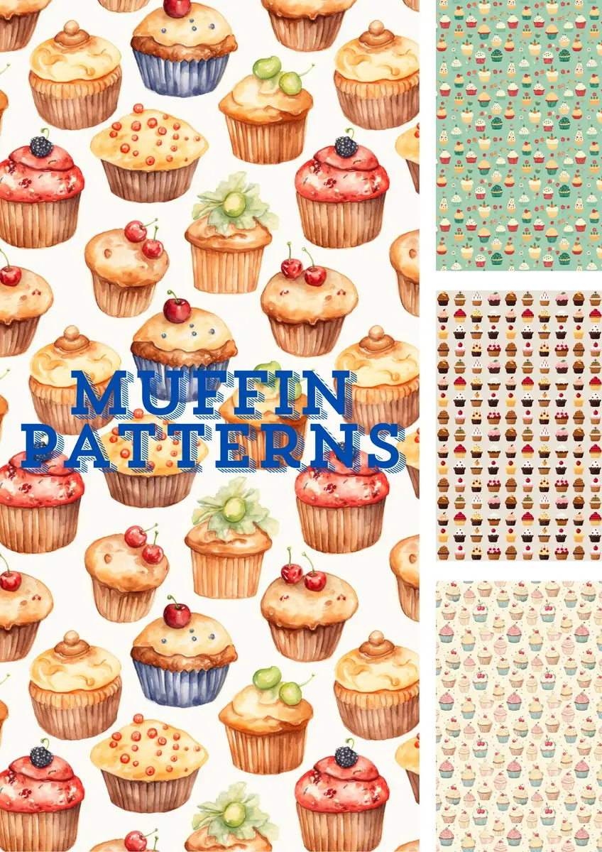 Muffin Kawaii Treat Patterns - Playful Anime-Inspired Digital Patterns for Creative Projects and Printables