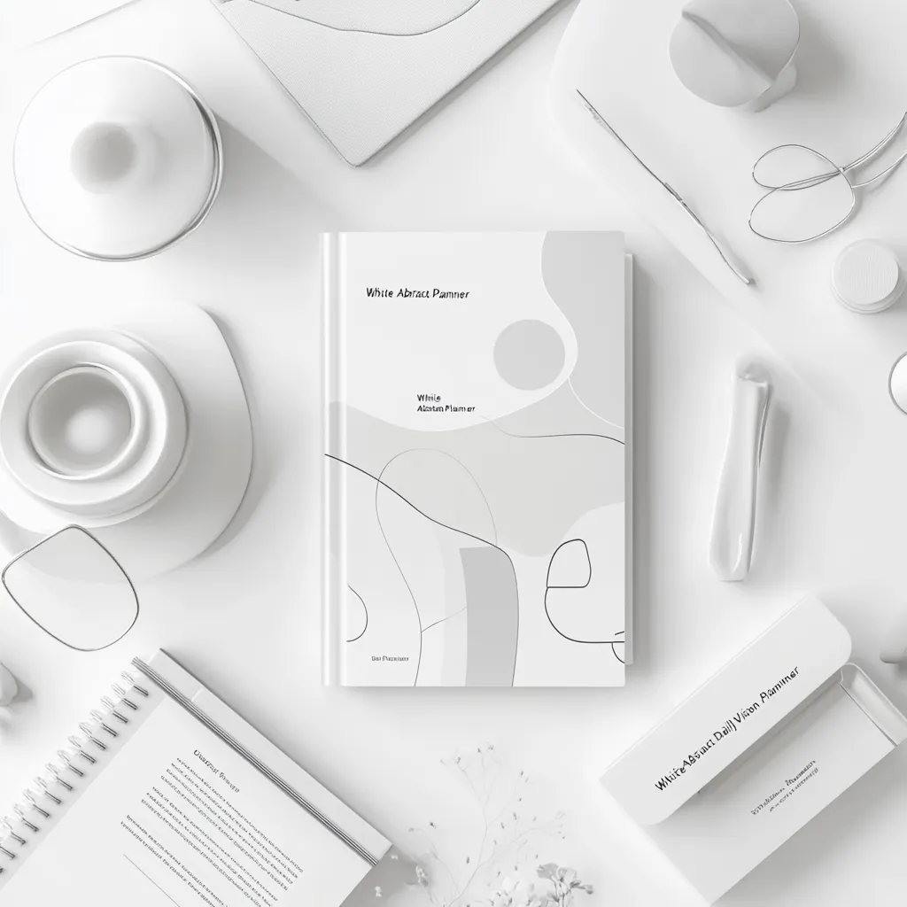 White Abstract Daily Vision Planner - Minimalist Organizer for Focused Productivity and Goal Tracking