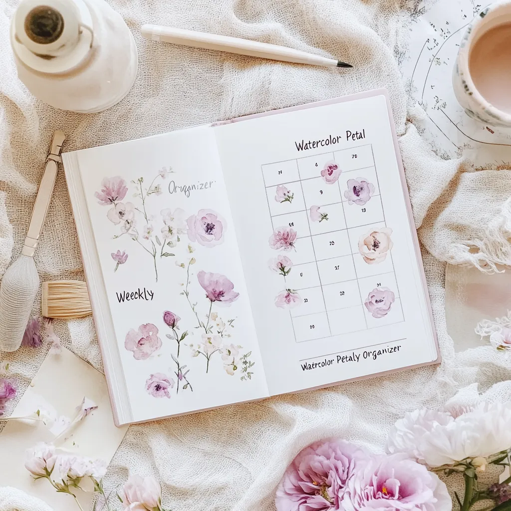 Watercolor Petal Weekly Organizer - Elegant Floral Planner for Effective Weekly Scheduling and Personal Productivity