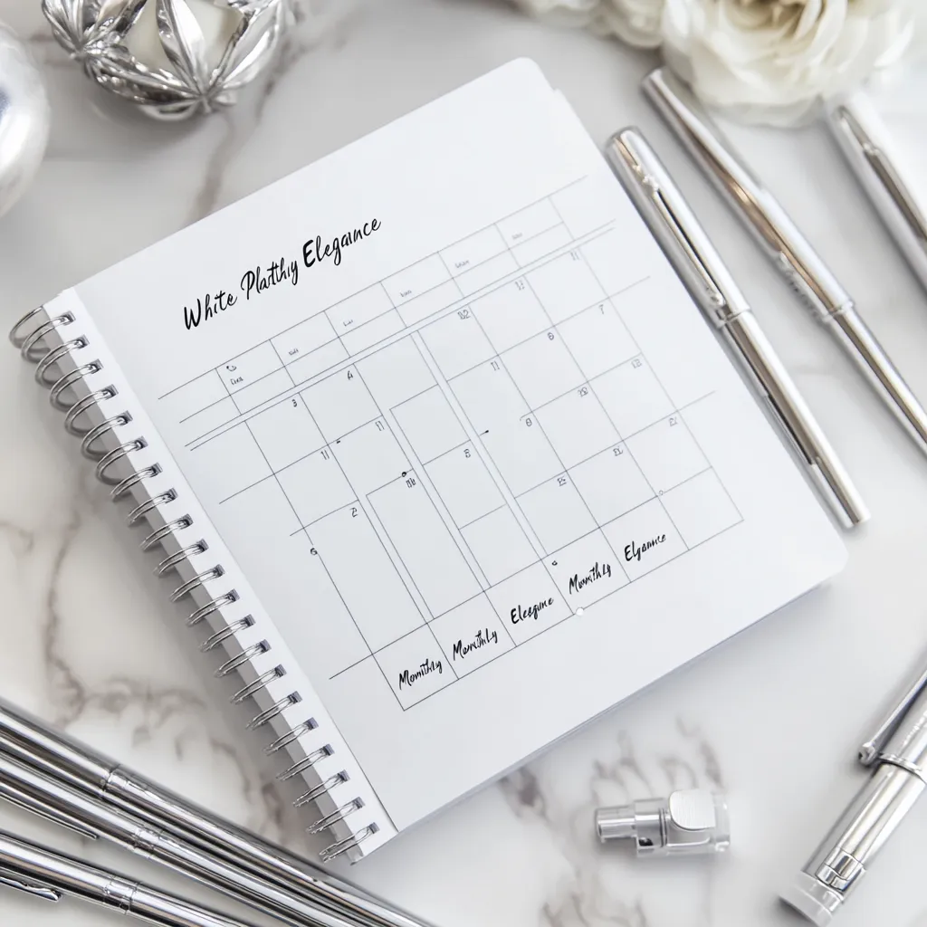 White Platinum Monthly Elegance - Premium Minimalist Monthly Planner for Professional Productivity and Style