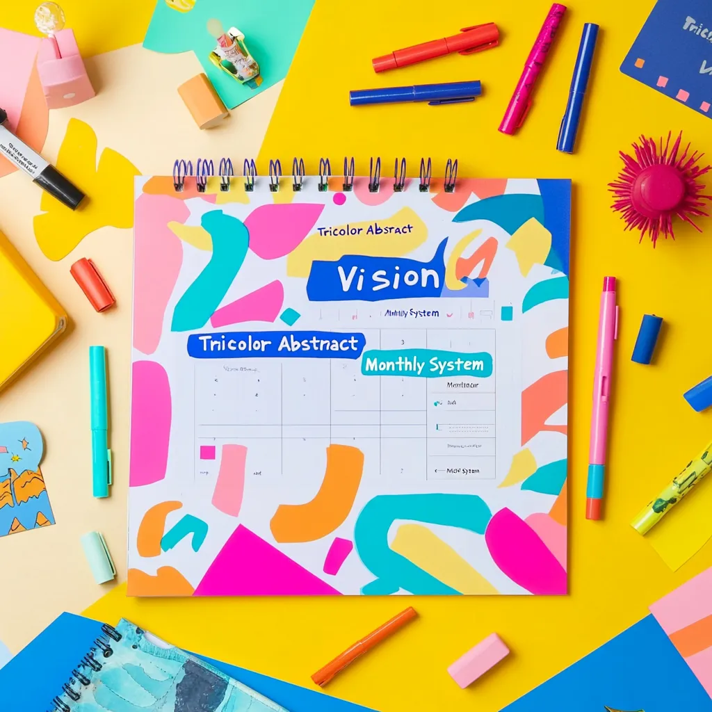 Tricolor Abstract Vision Monthly System - Modern Monthly Planner for Organized and Inspired Daily Productivity