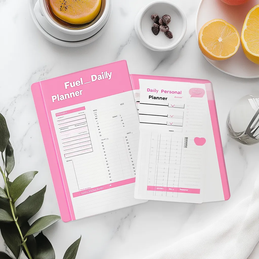 Pink Fuel Daily Personal Meal Planner - Elegant Nutrition Organizer for Health-Conscious Individuals and Busy Lifestyles