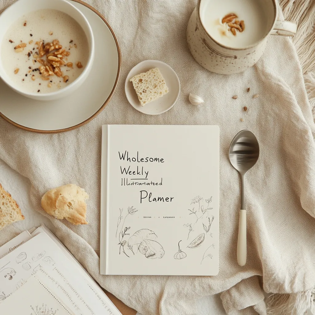 Wholesome Weekly Cream Illustrated Planner - Elegant Meal & Nutrition Organizer for Health-Conscious Users