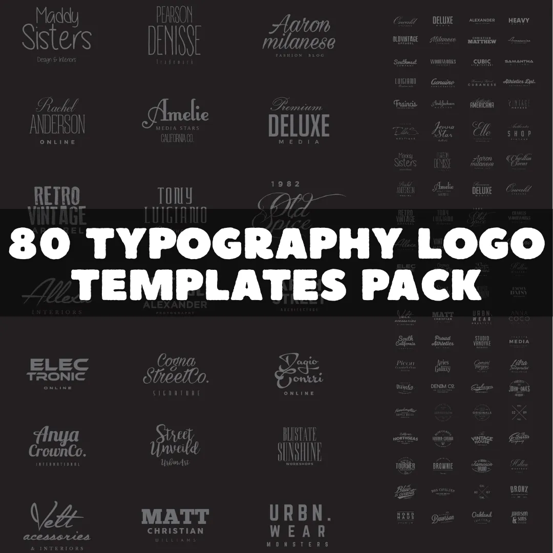 80 Typography Logo Templates Pack - Premium Visionary Branding Lab Logos for Business and Creative Professionals