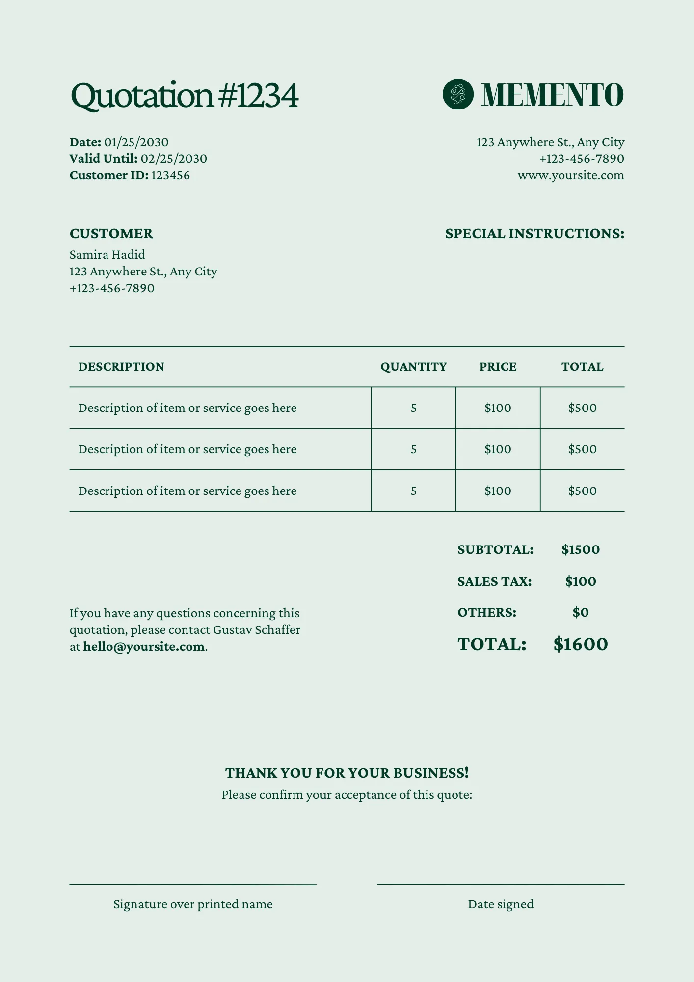 Elegant Mint Emerald Price Quote Design - Professional Business & Office Template for Clear, Polished Proposals