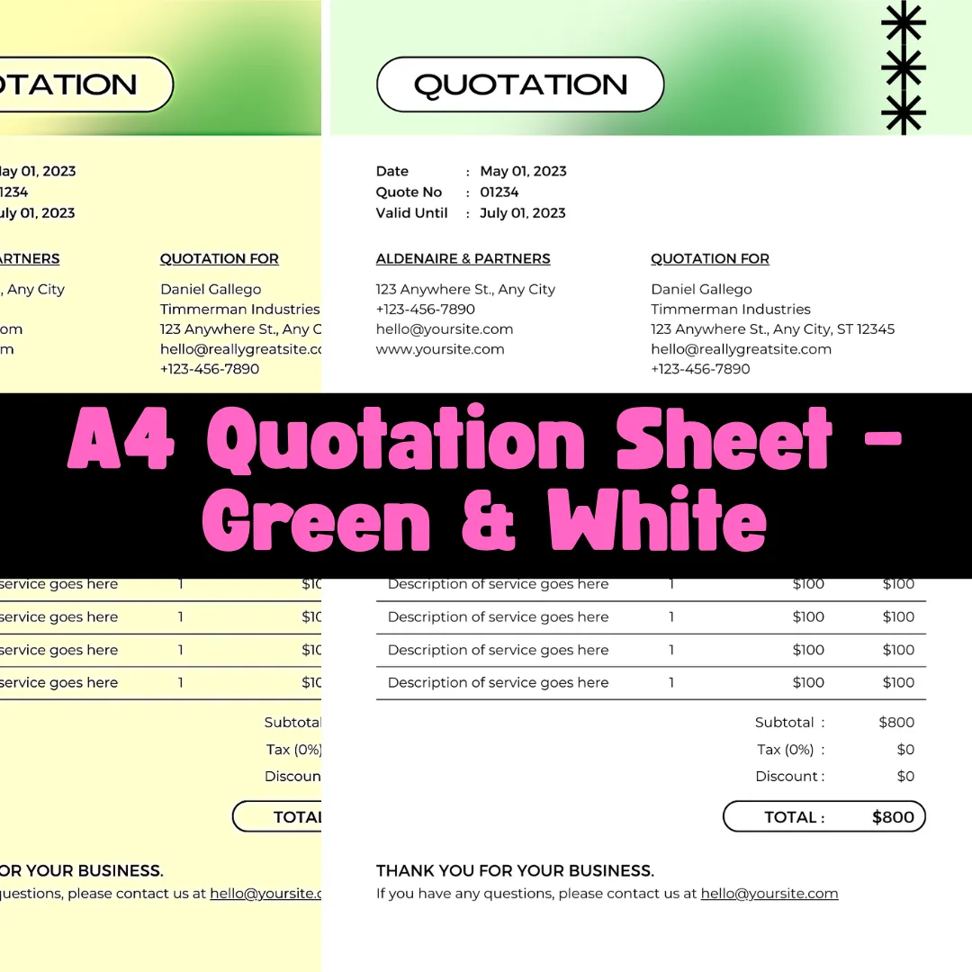 A4 Quotation Sheet Green White - Professional Business Report Template for Efficient Commercial Use
